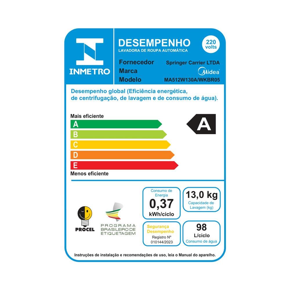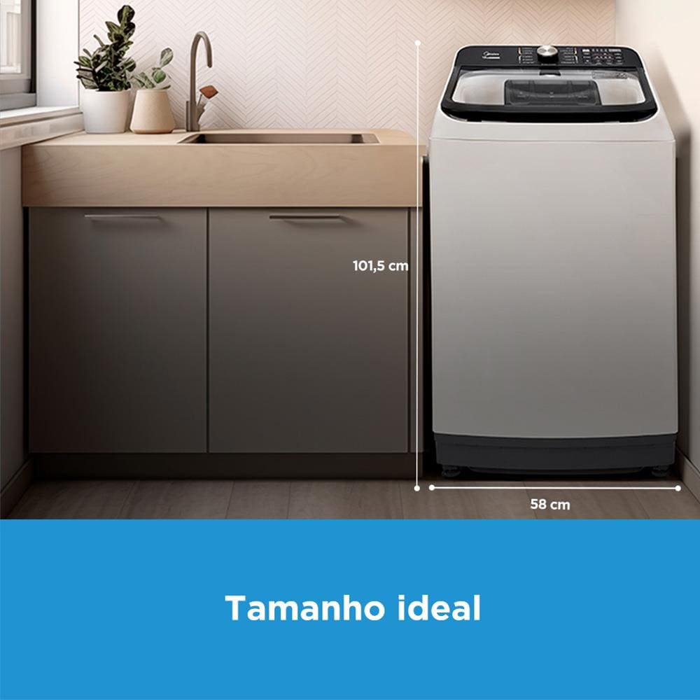 Conteúdo da embalagem: -Lavadora de Roupas Midea Wave Agitator 13kg MA512W130A com Timer Digital, Filtro de Fiapos, Função Perfume+ e Sistema Power Mix Dispenser - Branca;