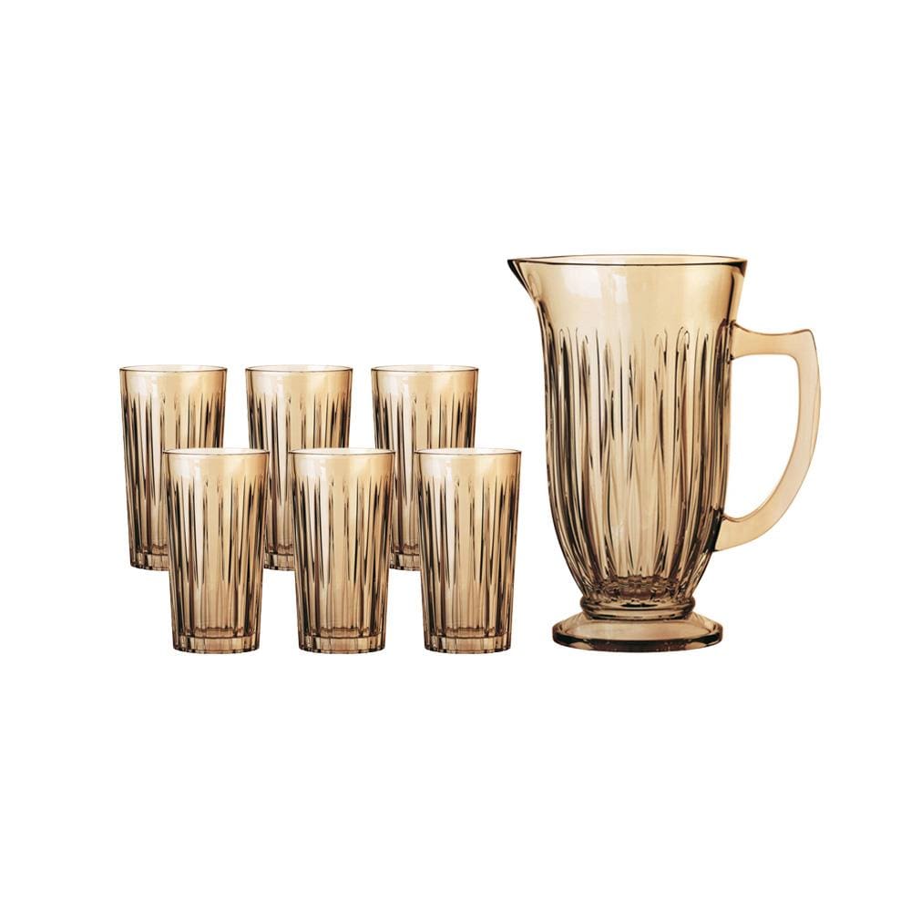 Conjunto de Jarra e Copos Hauskraft em Vidro Melina Âmbar – 7 Peças