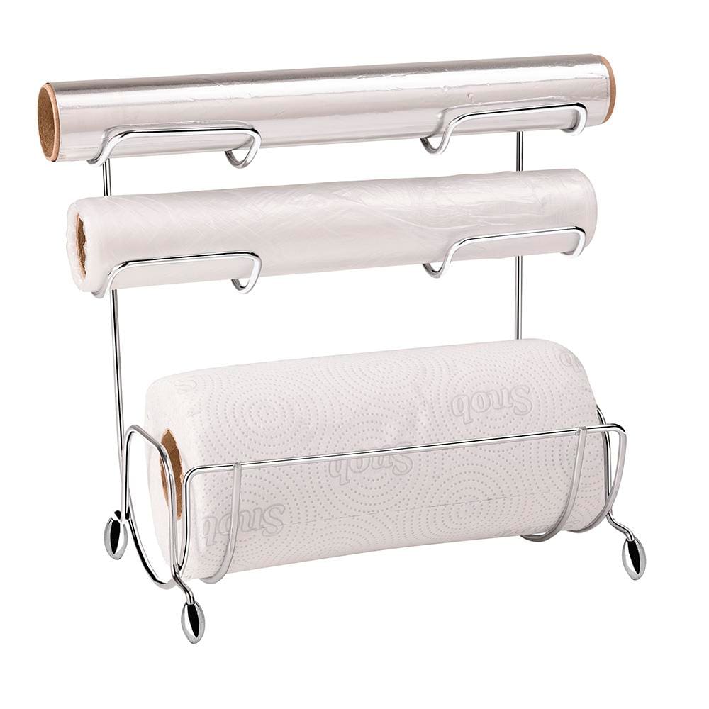 Com design moderno e estrutura resistente, o suporte acomoda até 3 rolos: um rolo de papel toalha, um rolo de papel alumínio e um rolo de plástico filme. Mantendo tudo sempre à mão na hora do preparo e armazenamento dos alimentos.