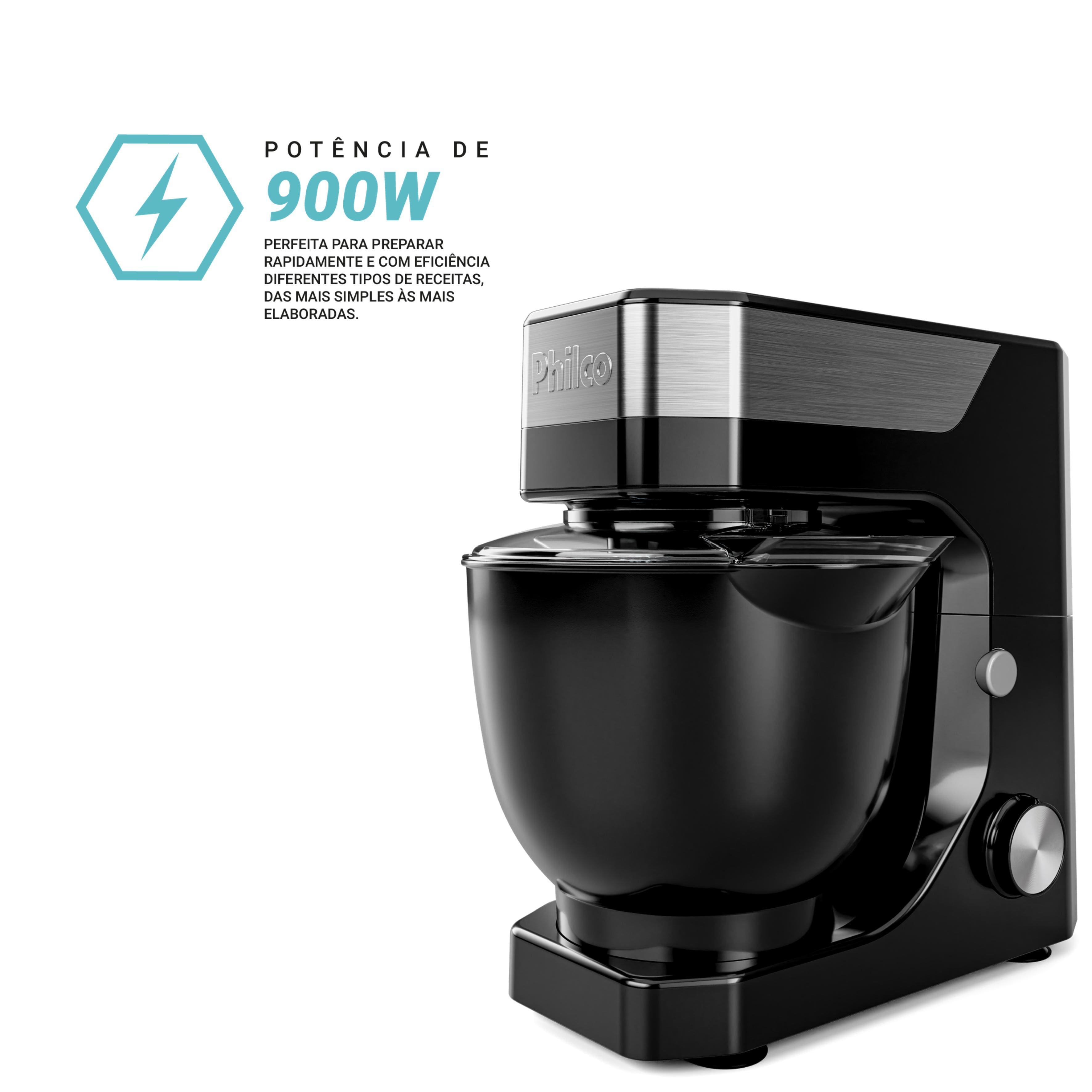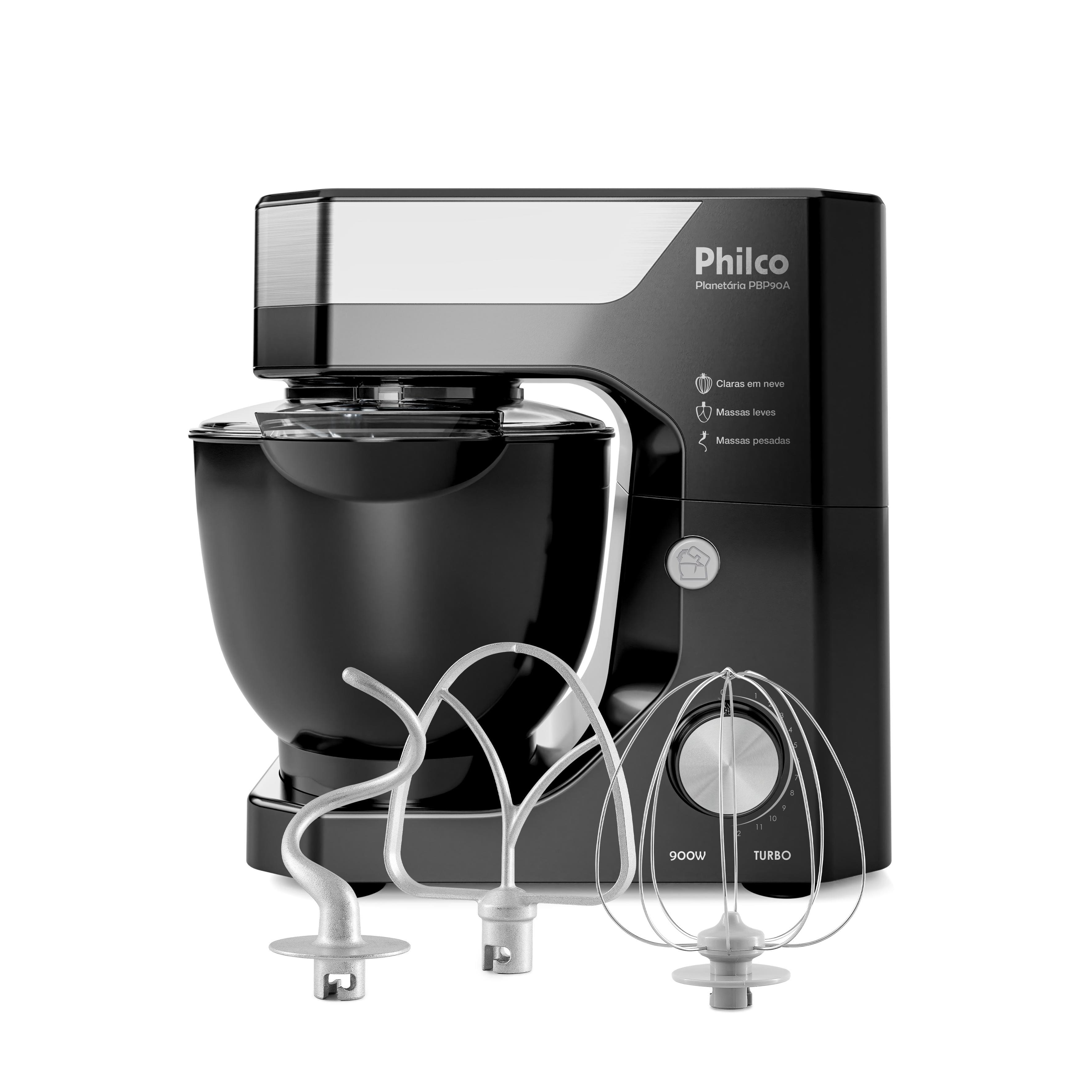 Batedeira Planetária Philco PBP90A 5L 900W Tampa Antirrespingo 12 Velocidades Preta