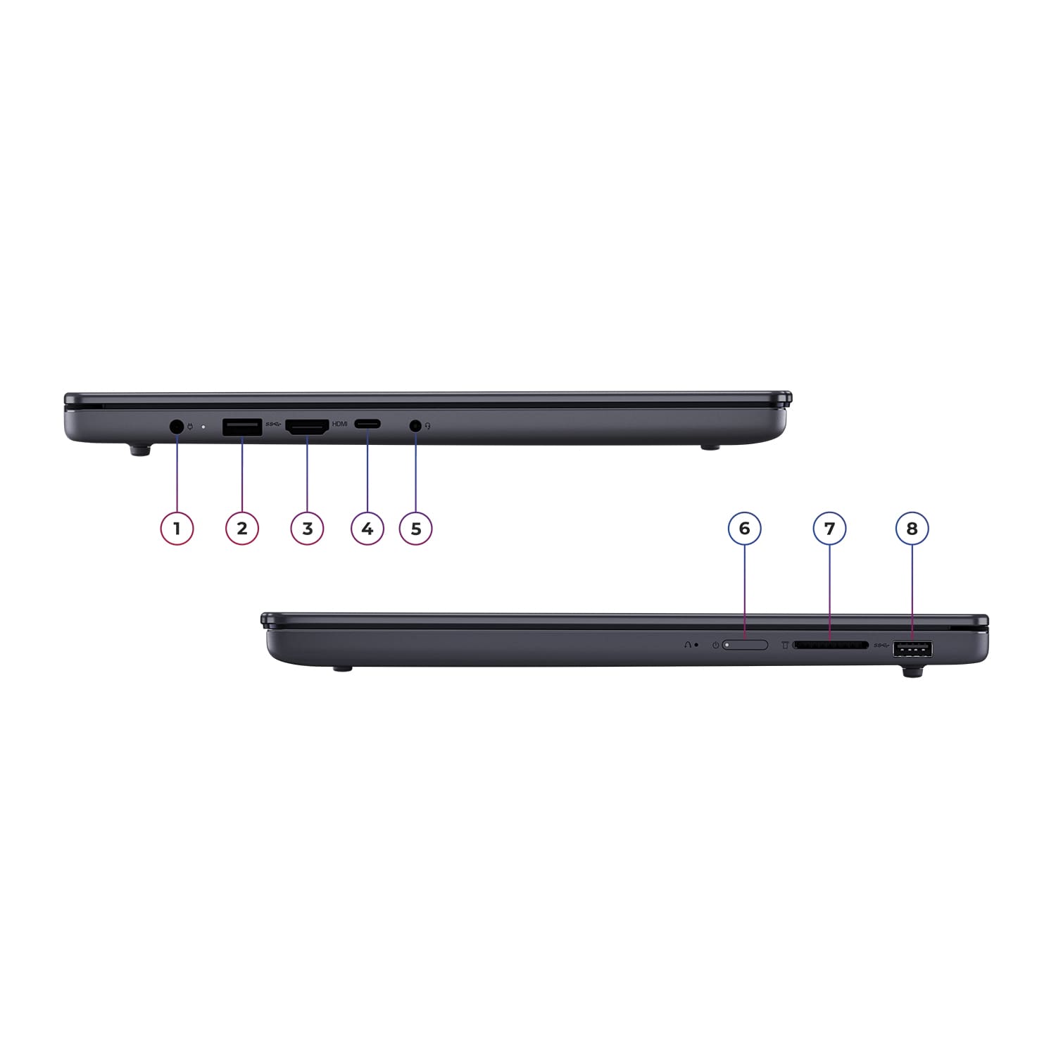 Fino (18,9 mm), leve (1,59 kg) e sustentável, utiliza 30% de material reciclado na tampa e embalagem ecológica. Sua bateria de 50Wh garante longa duração e conta com carregamento rápido para até 2 horas de uso com apenas 15 minutos na tomada.