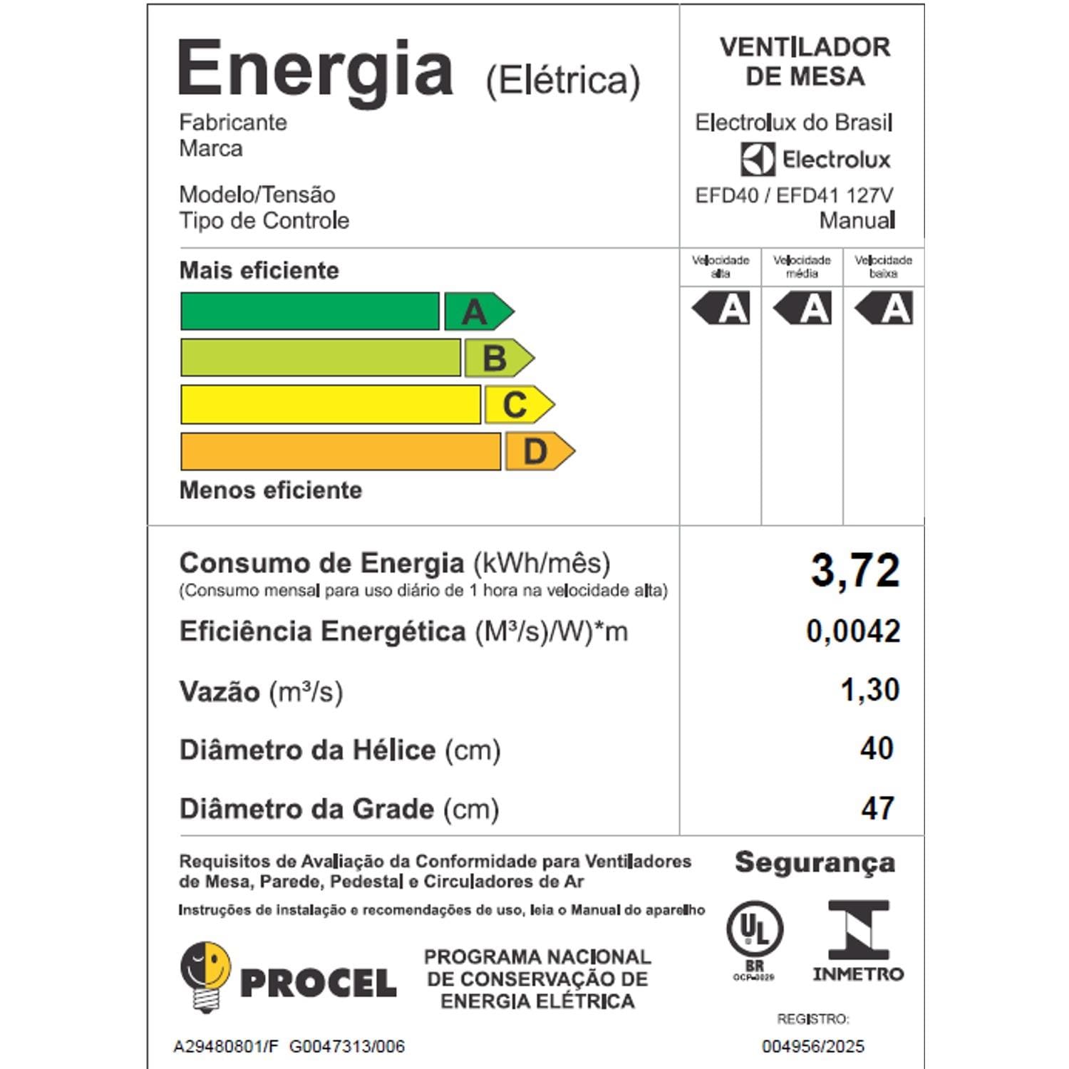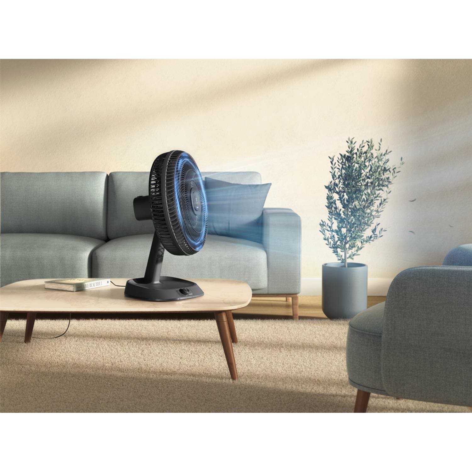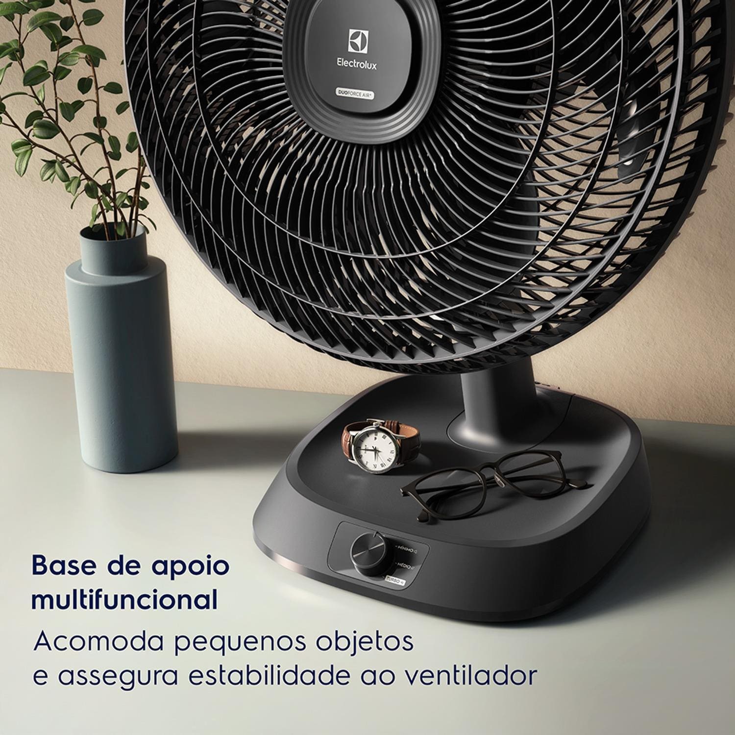 A base multifuncional oferece estabilidade e pode acomodar pequenos objetos, agregando ainda mais utilidade ao produto. Outro destaque é o baixo consumo de energia, com apenas 3,72 kWh/mês, garantindo eficiência e economia.Com 2 anos de garantia da Electrolux, o Ventilador de Mesa EFD40 DuoForce Air+ une tecnologia, conforto e confiança em um único produto.