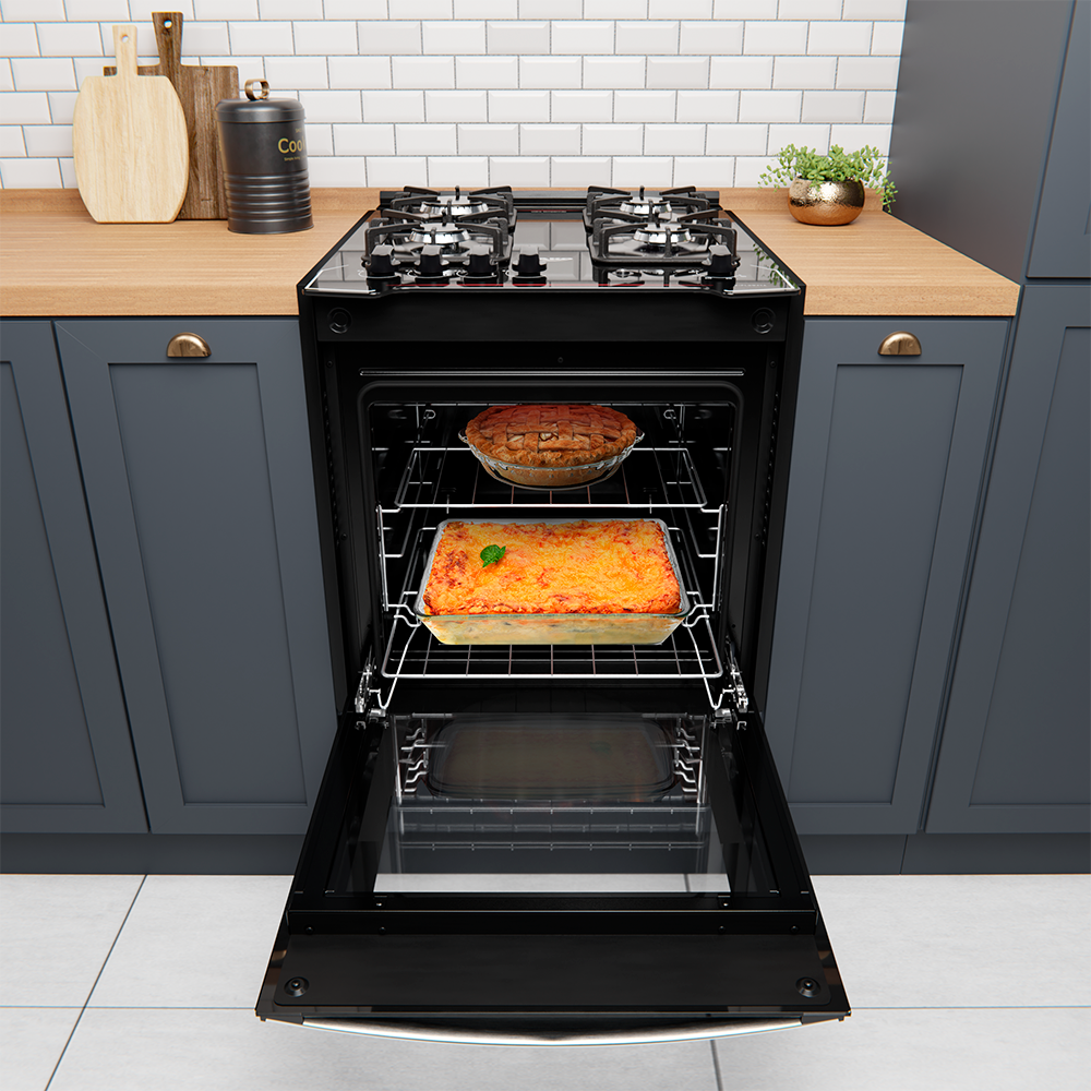 Para quem gosta de assar, seu forno é o ponto mais atraente! Com 82,5 litros, sendo o maior da categoria, é capaz de receber uma grande variedade de receitas. E para facilitar ainda mais seu uso, o forno tem duas prateleiras - uma inferior auto deslizante e uma superior deslizante com altura ajustável. E ainda conta com iluminação interna, para que você possa acompanhar todo o cozimento de forma segura.