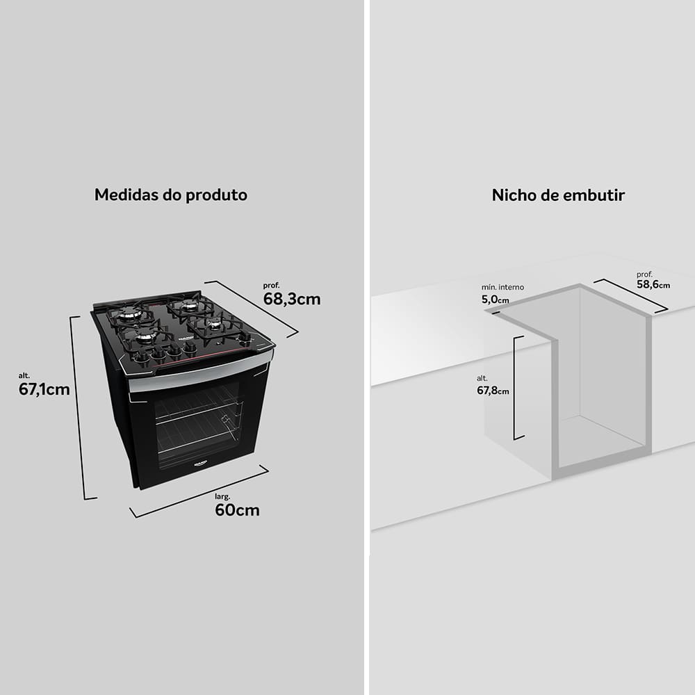 Dimensão do nicho para embutir (LxAxP): 57 x 67,8 x 58,6 cm