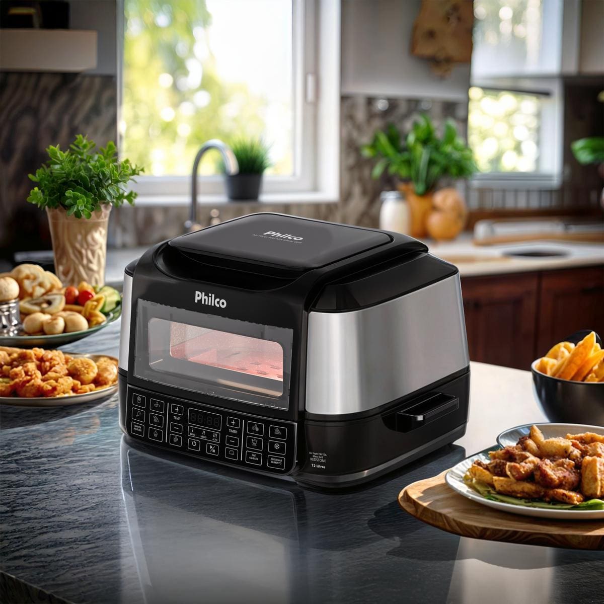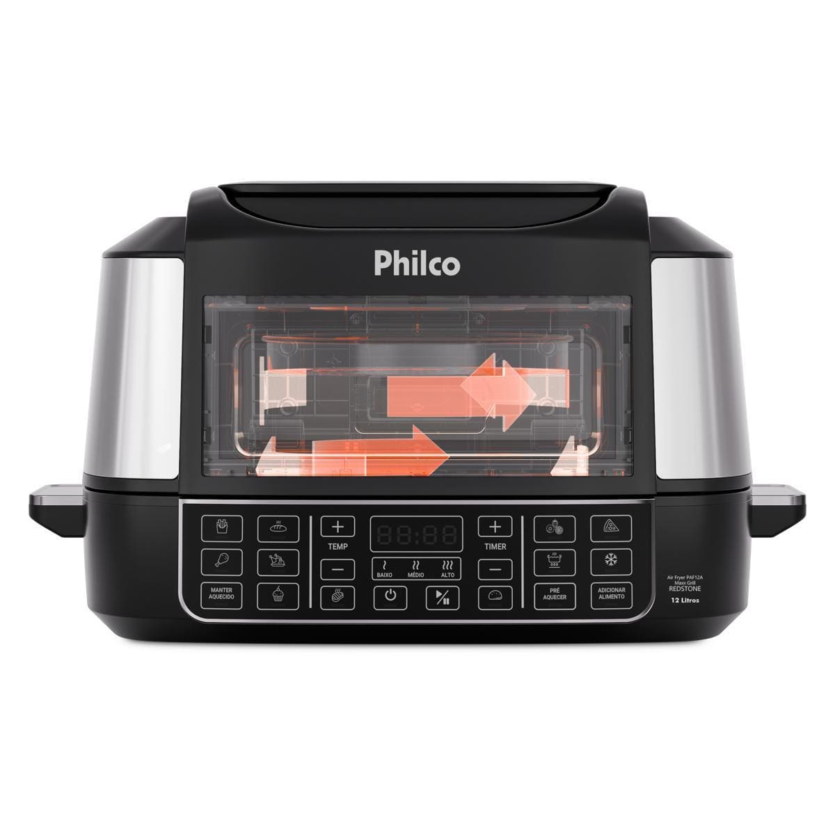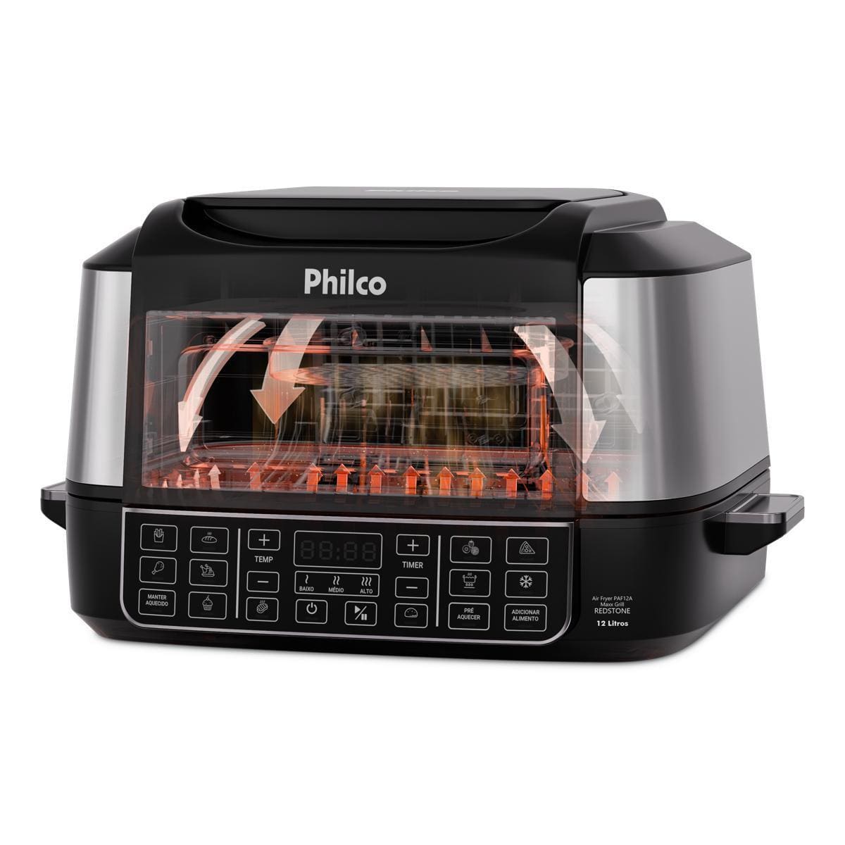 Design moderno em preto com acabamento em inox, capacidade de 12 litros e potência de 1800W fazem da Philco PAF12A a aliada ideal para quem ama cozinhar com qualidade e segurança.