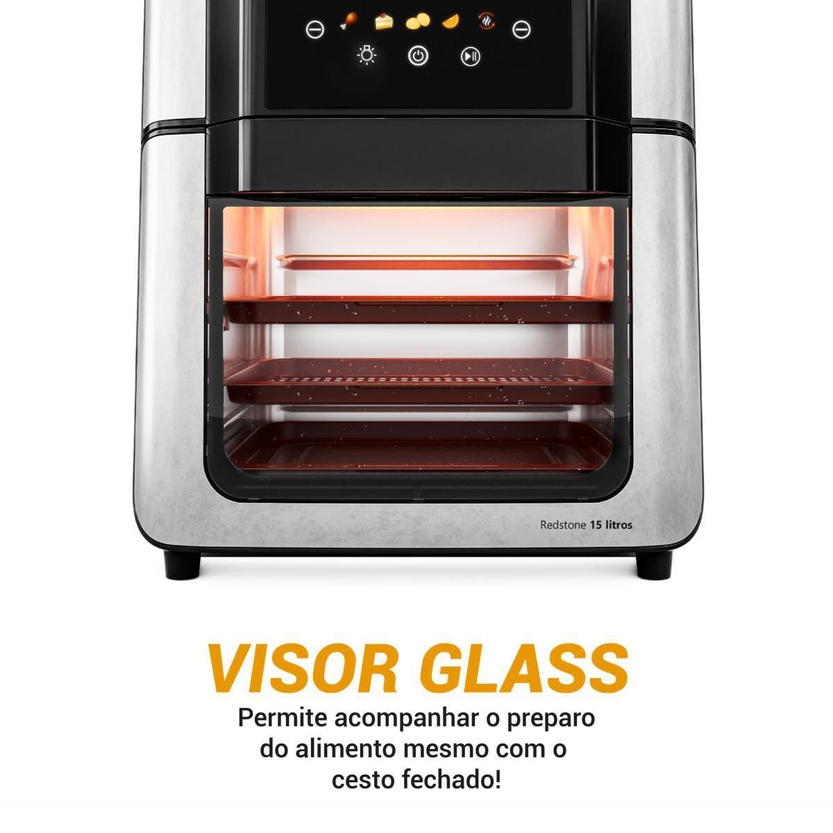 O painel digital com 10 funções pré-programadas garante preparo descomplicado com apenas um toque. Além disso, o revestimento Redstone é resistente, antiaderente e fácil de limpar, tornando sua experiência na cozinha muito mais prática.