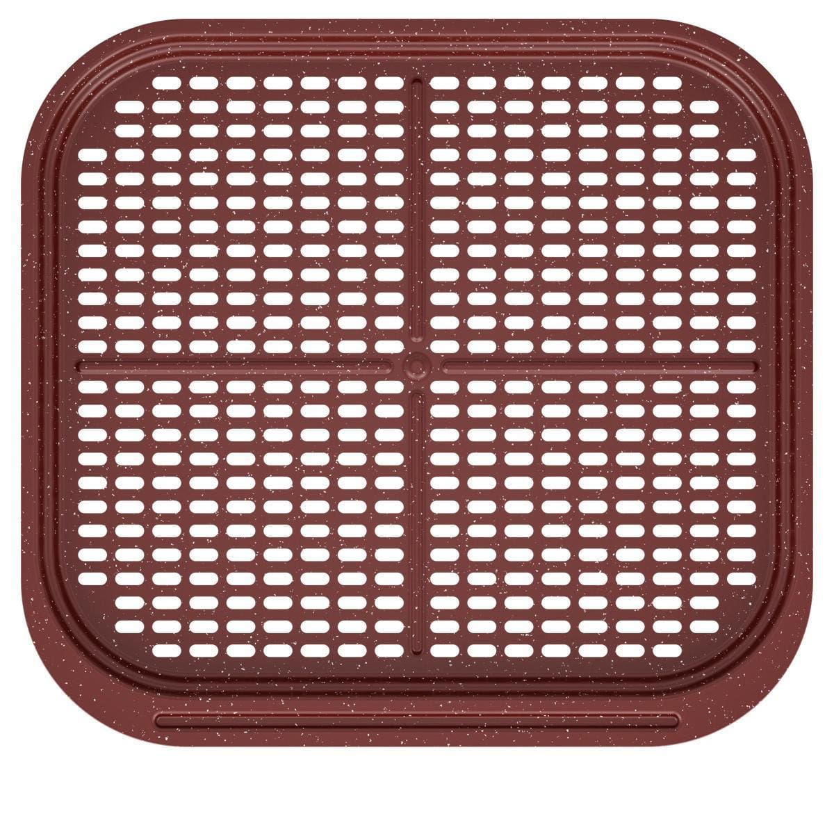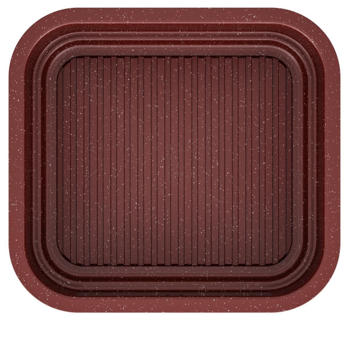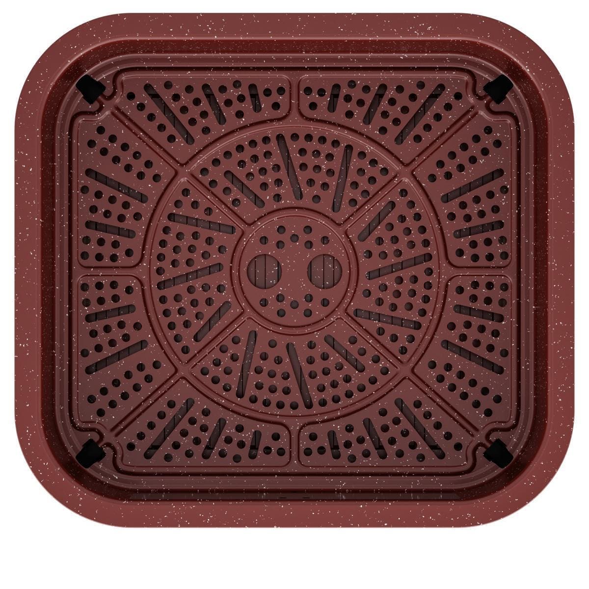 O cesto quadrado espaçoso com alça removível oferece praticidade e segurança ao retirar os alimentos, enquanto o revestimento Redstone garante maior resistência e durabilidade.