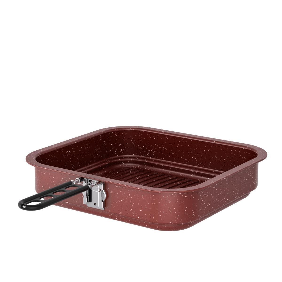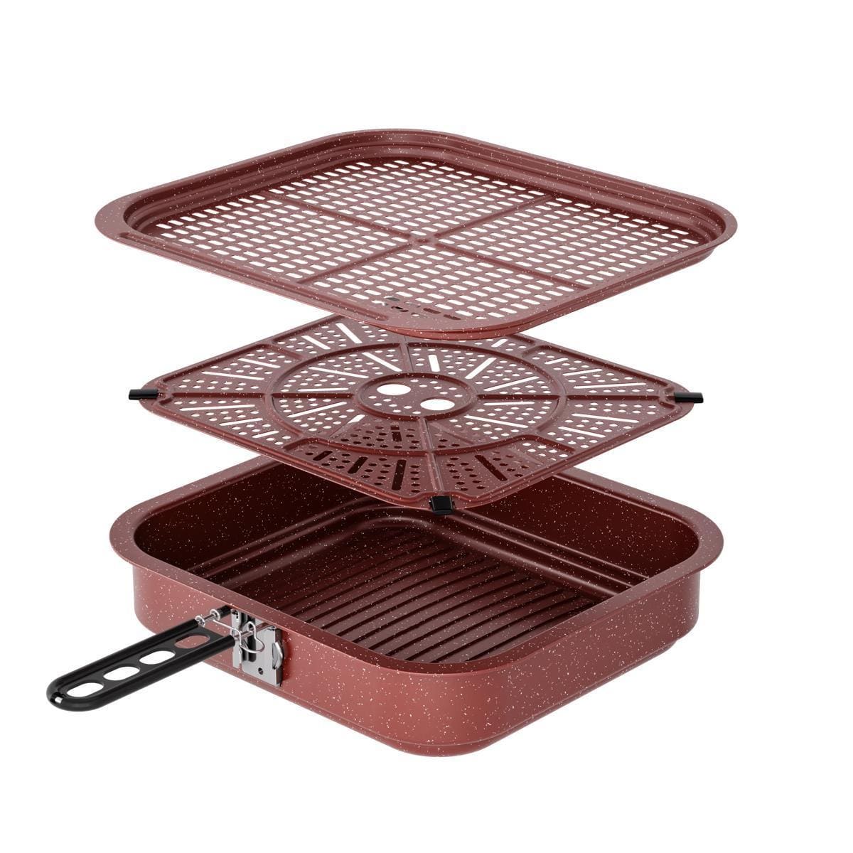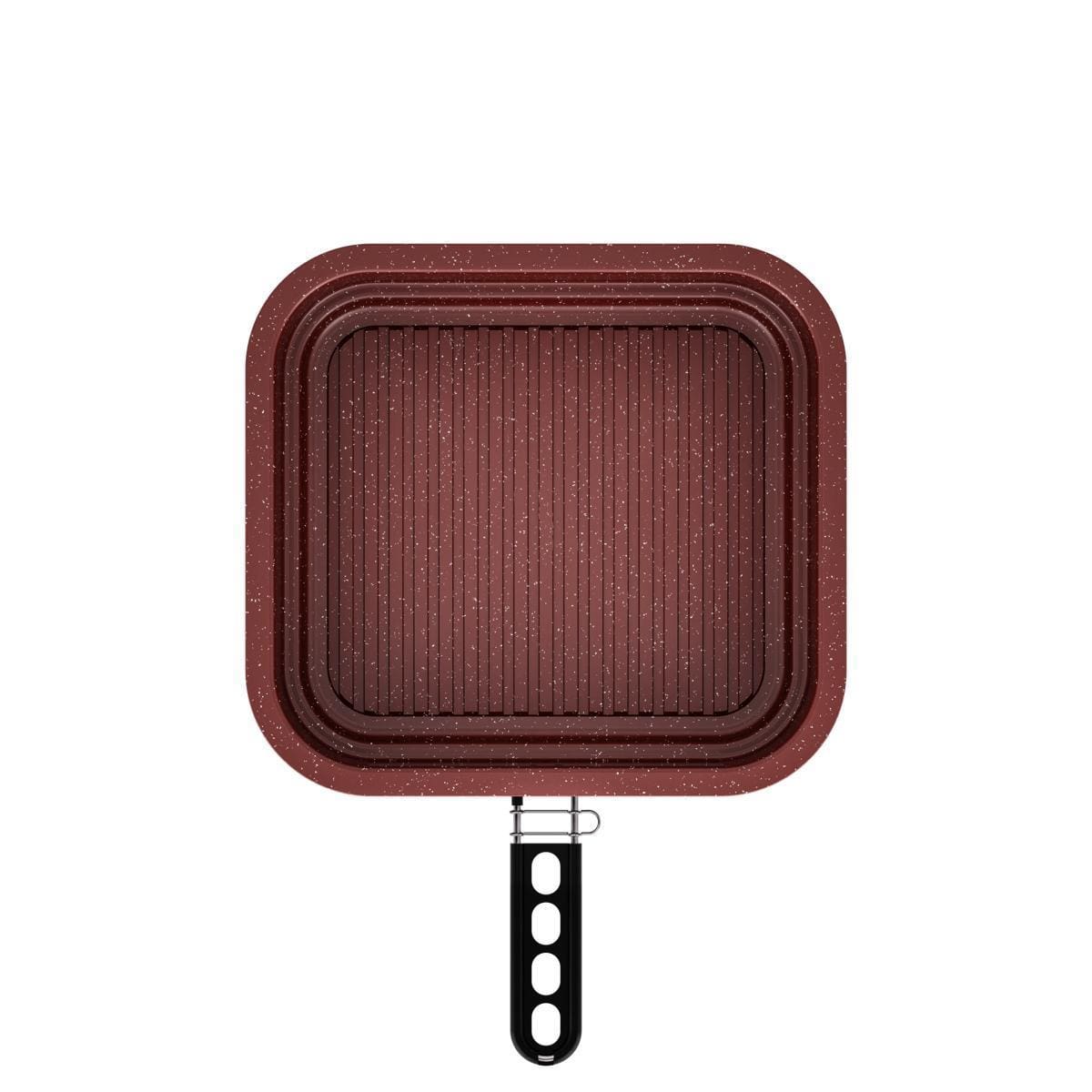 O cesto quadrado espaçoso com alça removível oferece praticidade e segurança ao retirar os alimentos, enquanto o revestimento Redstone garante maior resistência e durabilidade.