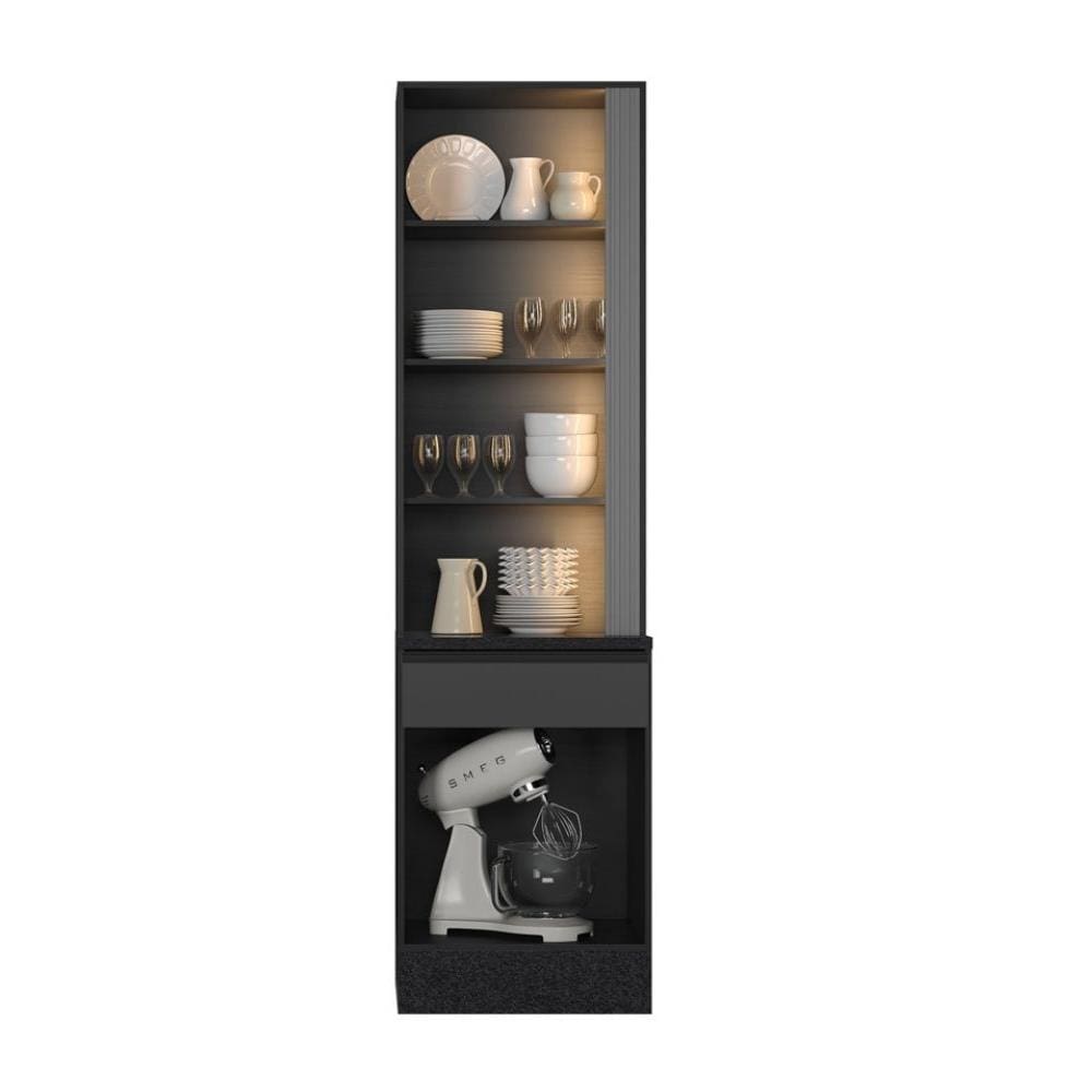 O modelo conta com 2 portas de bater, sendo 1 porta moldurada com vidro fumê, que agrega sofisticação ao visual e permite melhor visualização dos itens armazenados. Seu espaço interno é bem distribuído com 3 prateleiras, perfeito para louças, taças e utensílios.