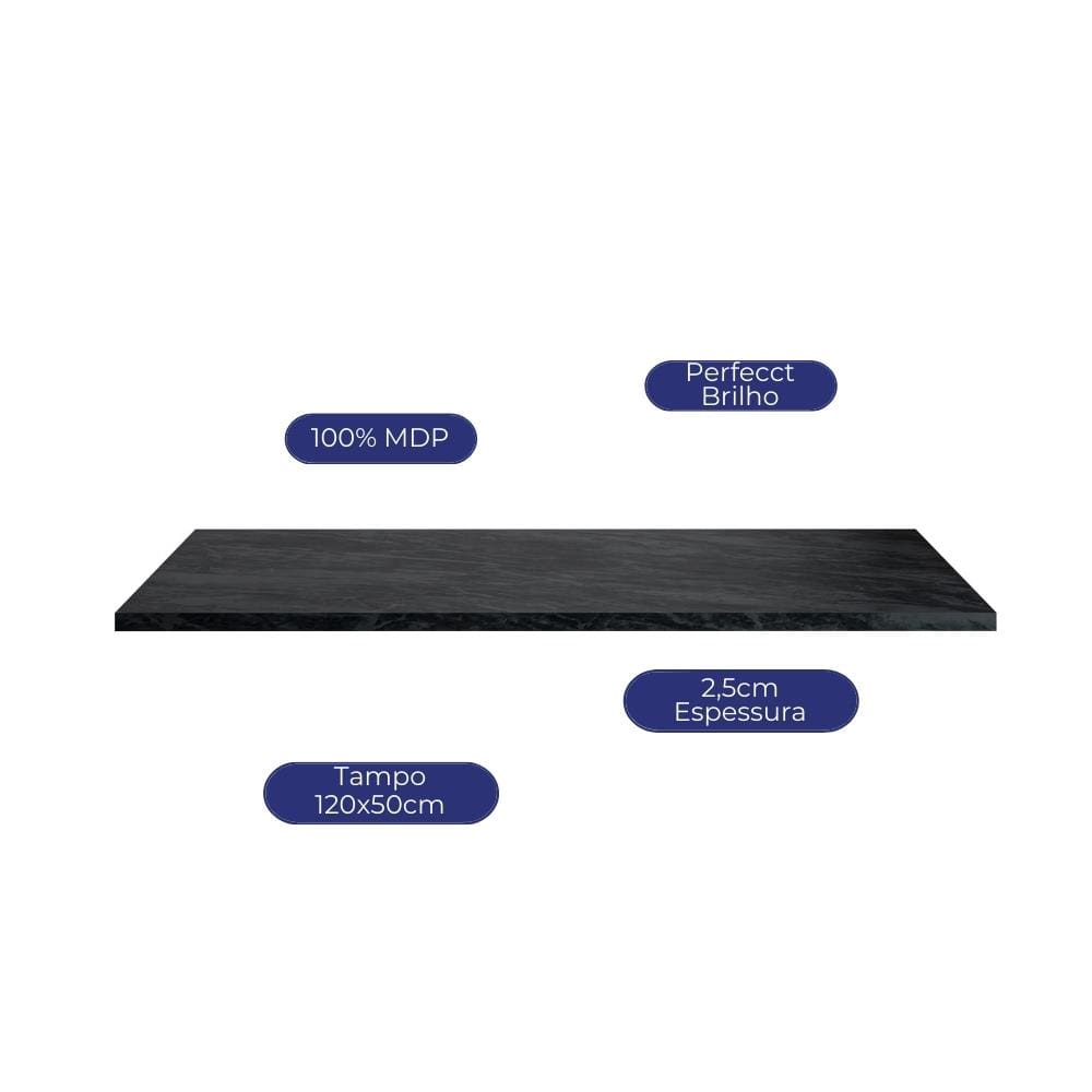 Tampo para Balcão Poliman Etna 120cm 27mm em MDP Pintura UV Lacca Ônix