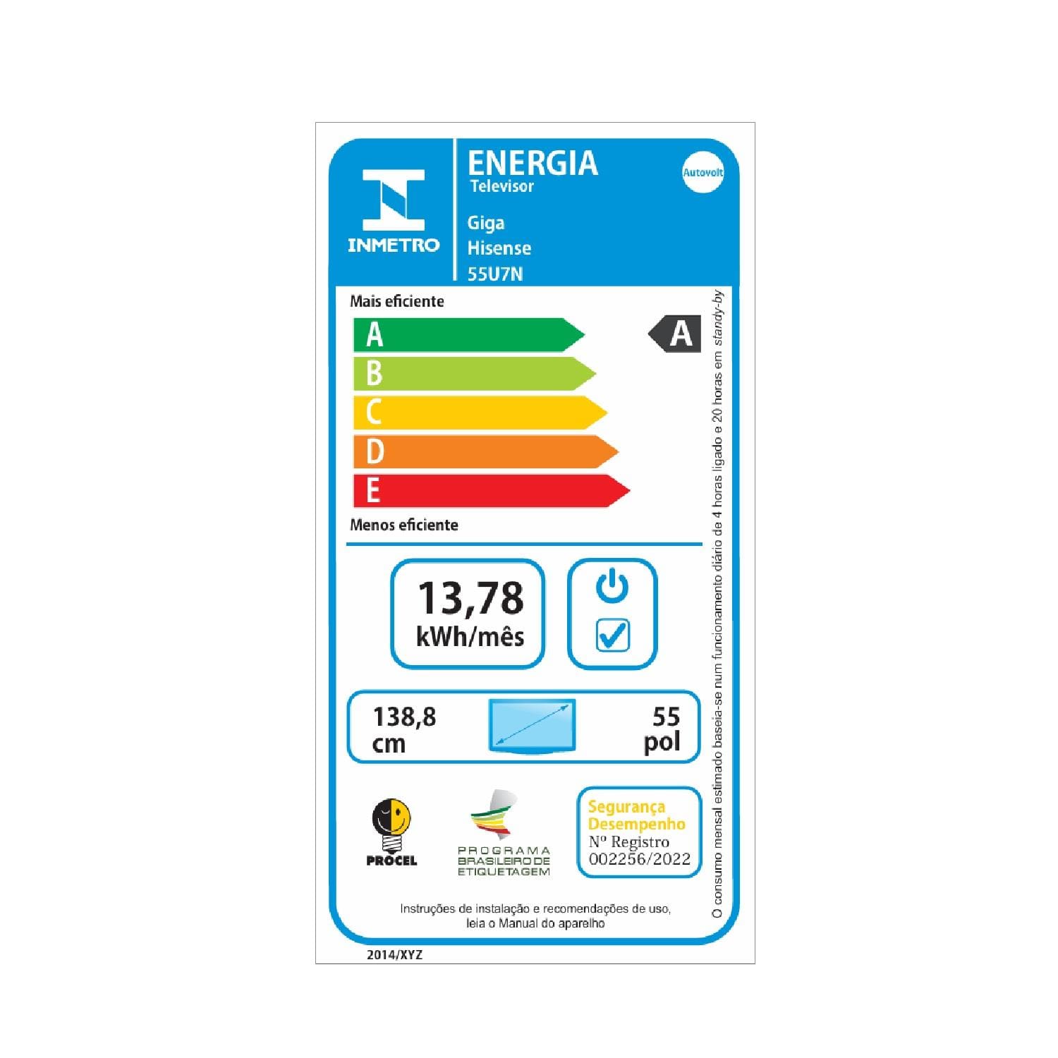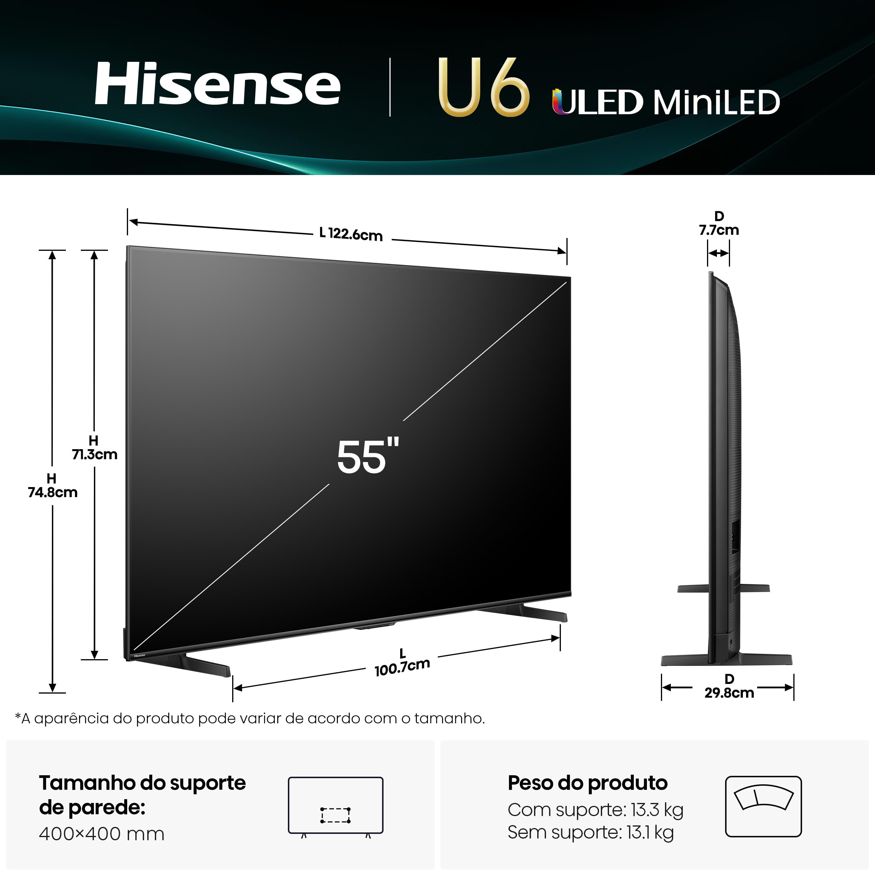 Características Gerais: - Smart TV 55” 4K UHD Hisense 55U6QV